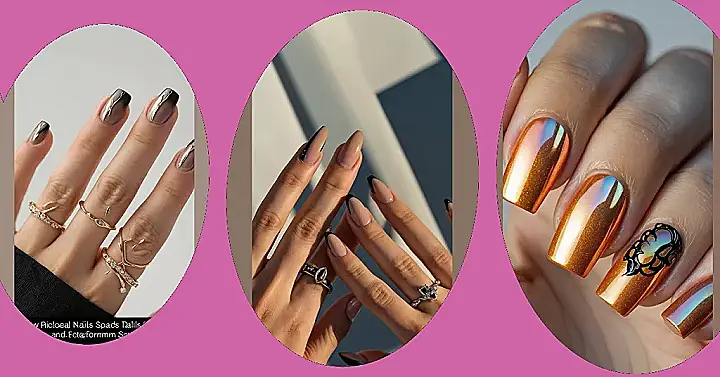 Now, if you were expecting bright orange and super shiny chrome vibes, these might be a surprise, but in the best way! Nail art is like fashion; it gets creative, and sometimes ‘sunset’ means the mood, not just the colors. These still have that metallic gleam, kind of like chrome’s sophisticated cousin, and they definitely capture a sunset’s drama. Wearing these feels like you’ve got a secret superpower on your fingertips, ready to conquer your day, impress your friends, or just make typing look way more epic.