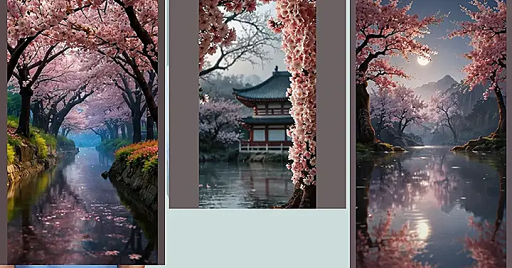 This picture is like a magical wallpaper come to life! Imagine strolling along a peaceful river, surrounded by the prettiest pink cherry blossoms you’ve ever seen. The trees are so full of blooms they look like fluffy cotton candy clouds, and the moon is shining down like a giant spotlight, making everything look even more dreamy. It’s the perfect place to forget about homework and just chill for a bit.