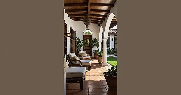 The details are what really make it special: think charming wooden beams creating a cozy feel above your head, those cool arches whispering tales of long-ago Spanish explorers, and the lush greenery adding a touch of paradise. This isn’t just a house; it’s a statement piece that shouts “relaxation” and “sophistication” – all without even trying! If you’re looking for a home with serious “chill vibes,” you might just want to give this style a second glance!