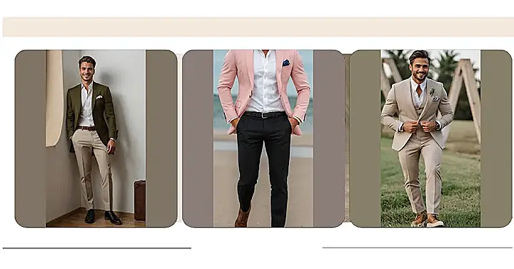 Looking sharp doesn’t have to be boring! Check out this modern take on men’s suits. It’s not just your grandpa’s pinstripes anymore. This guy’s rocking a pink blazer like he’s about to sell you a timeshare in Miami, but in a good way. It’s the kind of suit that says, “Yeah, I can handle a board meeting, and then I’m hitting the beach for some volleyball.”