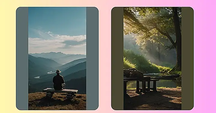 Imagine this: you’re chilling in a comfy wooden chair, watching the sun dip below a mountain range, painting the sky in fiery oranges and soft yellows. A gorgeous lake mirrors the sunset’s colors, making the whole scene look like a double dose of awesome. There’s even a pair of lanterns keeping the mood cozy, all while nature does its thing – the ultimate mind-relaxing nature location! It’s like someone designed a postcard, but then made it a reality so you can totally escape your day!