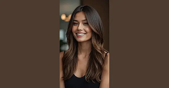 This girl’s hair is like a modern masterpiece! It’s got all the layers – think of it as a delicious cake with tons of yummy frosting (the hair!) and each layer is perfectly placed. It’s not just one long, boring hairstyle, oh no! This ‘do is all about movement and shine, like a waterfall of chocolate. It’s so modern, it practically screams “I’m ready for my close-up!” and it’s just effortlessly cool.