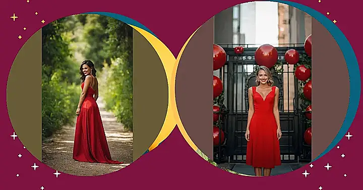 This woman looks absolutely stunning in her red dress! It’s like she stepped straight out of a magazine, and her smile could light up a room. She’s got that confident, “I’m ready for anything” vibe going on. And those golden heels? They’re the perfect touch to complete her look. It’s like she’s saying, “I’m not just dressed up, I’m ready to take on the world!”