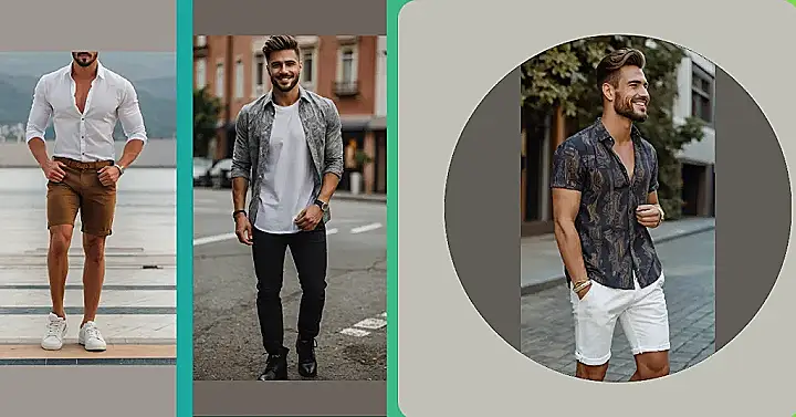 So, you want to rock a men’s shirt outfit, huh? Well, check out this dude! He’s got the “business on top, party on the bottom” look down. It’s like he couldn’t decide if he was going to a fancy lunch or hitting the beach, so he just said, “Why not both?!” The white shirt is a classic, but those brown shorts are throwing a curveball that’s kind of awesome. He looks ready to negotiate a huge deal then immediately go for a swim!
