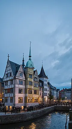 Those lights twinkling in the water are like little stars, making the whole scene look super dreamy. It’s like Denmark decided to throw a party and invited all the cutest buildings and the most peaceful water to come hang out. Time to start planning that class trip!
