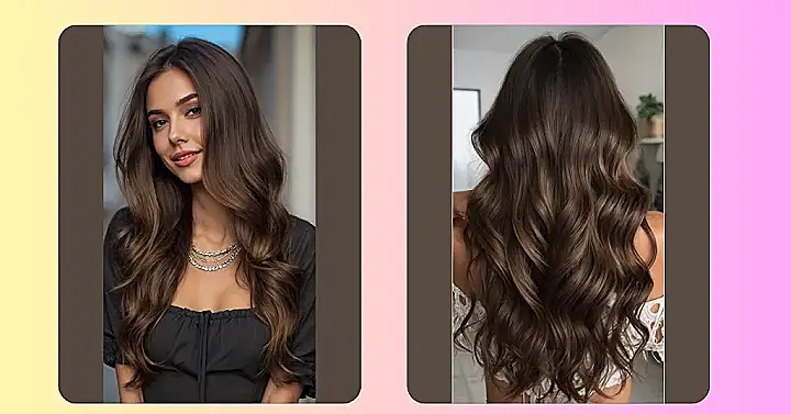This picture shows off exactly why brunette hair is having a major moment. Just look at those glossy waves and that gorgeous deep color! It’s the kind of hair that looks amazing whether you’re acing a pop quiz or just chilling with friends. It screams confidence, like it knows all the best secrets and smells faintly of sunshine and maybe a little bit of mischief. Getting your hair to look this perfect probably requires a team of tiny squirrels doing precision brushing, but we can dream, right?