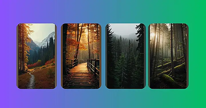 This picture is like a scene out of a fairy tale. Imagine walking through this forest, the air thick with mist that makes the sunlight look like it’s glowing. The trees are all dressed up in their fall colors, like they’re getting ready for a big party. It’s so peaceful and quiet, you can almost hear the leaves whispering secrets to each other.