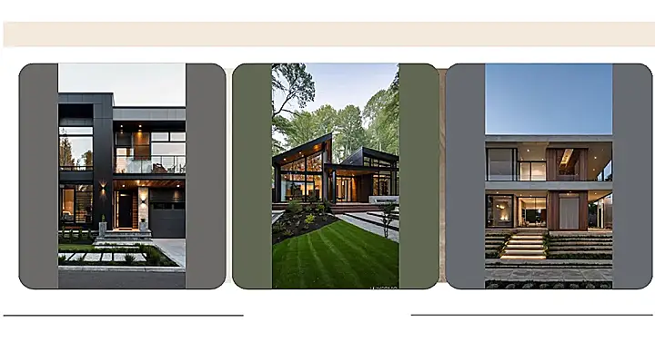 Look at this house! It’s like the architectural version of that one kid in school who always dressed super stylish, but somehow made it look effortless. The straight lines and mixed textures give it a serious “I’m modern and I know it” vibe, but the little plants and that warm wooden door make it feel welcoming. You could totally imagine a super-chill family living here, maybe with a robot dog or a self-watering garden.