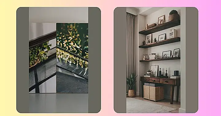 Hey there, future interior designers! Ever walked into a store and thought, “Whoa, I could totally make that myself…for way less money?” This picture is all about that feeling. It shows how you can totally transform a boring wall into a super stylish, personalized space using DIY home decor. See those awesome shelves? Probably not that hard to build yourself with some wood and a little help from a grown-up (or a really helpful YouTube video!). Then, you can fill them up with your favorite treasures – cool pictures, plants that don’t need much attention (because, let’s face it, you’re busy), and maybe even some of those quirky little things you found at the flea market and your parents said “you don’t need that”. Basically, it’s a chance to show off your amazing personality without breaking the bank.