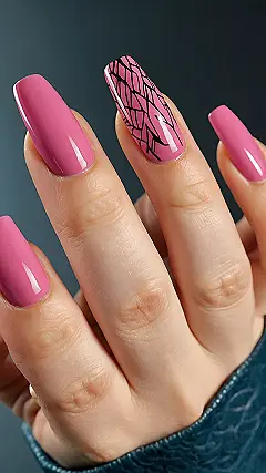 Those nails are so cute and pink, they’re practically begging for a selfie! With that cool black design though, it’s like they’re saying, “Yeah, I’m adorable, but don’t mess with me.” Think of it as the nail version of a sweet kitten with a seriously mischievous glint in its eyes.