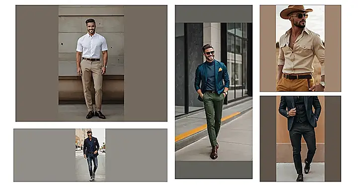 So, you hear “americana fashion men” and maybe you picture plaid shirts, ripped jeans, and boots ready for a cattle drive, right? Well, check out this dude! He’s rocking something totally different, like Americana went to college and got a swanky job. This isn’t your grandpa’s look for mending fences; this is more like looking sharp enough to negotiate a deal or at least grab the best burger in town. That sleek blue jacket and cool green pants? Definitely not standard issue for digging ditches, but hey, looking this good is definitely an American pastime!