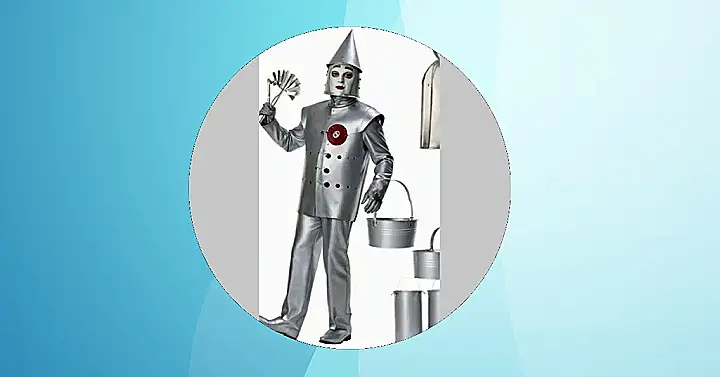 This Tin Man costume is definitely not your average Halloween getup! With his shiny, silver suit, pointy hat, and oil-slicked smile, this guy looks ready to take on the Yellow Brick Road. Just imagine the fun you’d have walking around in this outfit, especially if you carry a bucket with you, like the real Tin Man does! It’s just like in the Wizard of Oz, except this time, you get to be the one who’s in charge of making sure everyone is happy. After all, a Tin Man’s gotta stay positive, right?