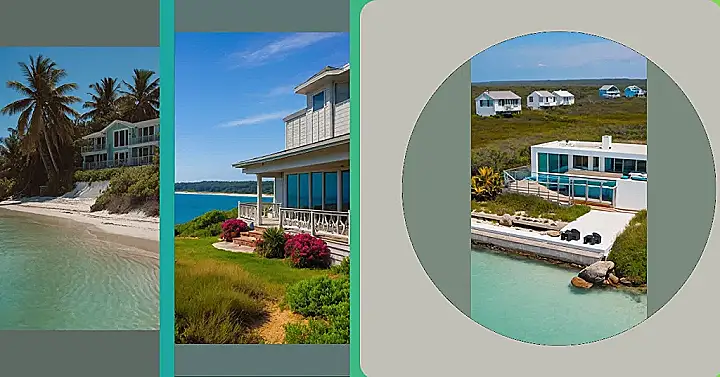 This beach house is a total dream! It’s perched high above the sand on sturdy stilts, like it’s afraid to get its toes wet. Imagine waking up in that cool, breezy house and being able to step right out onto the beach! You could spend all day building sandcastles, splashing in the waves, or even taking a nap under a palm tree.