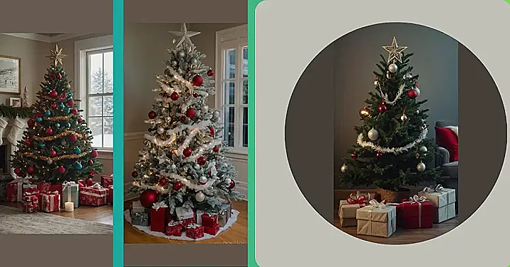 It’s all about the perfect mix of sparkle and shine, right? The golden garland and twinkling lights add a touch of extra glamour without turning the tree into a crazy, chaotic mess of tinsel. It’s proof that you don’t need a million ornaments to create a showstopping tree. This year, why not go for a simpler, more elegant look? Maybe try this color scheme – red, teal, and gold, because it looks absolutely stunning! And don’t forget the star on top – it’s the perfect finishing touch!
