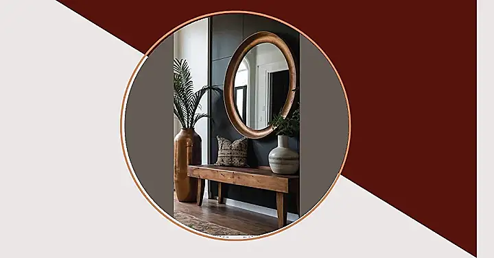 This entryway is seriously goals! Just picture yourself walking in, greeted by a massive, gorgeous mirror – like a portal to a super-chic version of your own home! The dark wall is like a movie star’s backdrop, and the wooden bench is perfect for dropping your bags and checking your reflection. It’s stylish, it’s practical, and it’s giving serious “welcome home” vibes.