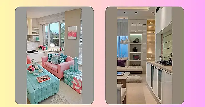 This living room is the definition of “comfy”! Just look at that fluffy pink couch, begging you to curl up with a good book. The pillows are so soft they look like clouds, and the cute little turquoise side table is just the right size to hold your favorite snacks. It’s like stepping into a magazine photo, but way more inviting.
