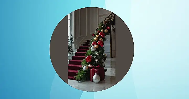 This Christmas decor is seriously next level! Imagine walking down those fancy stairs, all decked out in rich red carpet and a gorgeous garland dripping with shiny baubles. It’s like something out of a Christmas movie – or maybe a super-stylish elf’s mansion! Those red and gold ornaments are so festive, and that present at the bottom? I bet it’s filled with luxury chocolate or something equally awesome. Basically, it’s Christmas goals.