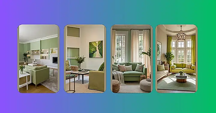 Imagine walking into a living room that feels like a gentle hug from nature. This room totally nails the “greenery living room” vibe, almost like the designer raided a fancy garden center and then decided to make a comfy chill zone. The couch is the perfect shade of light green which is perfect for binging your favourite series.