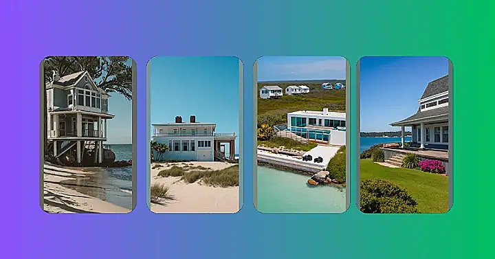 The house is sitting right on the shore, so you can hear the calming sound of waves crashing on the sand. You can almost feel the cool breeze coming in through the windows and smell the salty air. It’s a peaceful scene that makes you want to pack your bags and head to the coast, just to enjoy the simple pleasures of beach life.