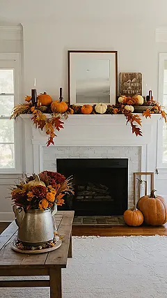If you think we’re stopping at the porch, oh boy, are you in for a surprise! Your living room can also strut its stuff with fabulous throw pillows featuring autumnal hues. And let’s not forget about that fireplace mantel – nothing screams family gatherings like a well-decorated mantel, perhaps with a mix of modern candle arrangements and farmhouse decor. Toss in some fabric pumpkins and quirky art pieces, and you’ve got a real conversation starter!