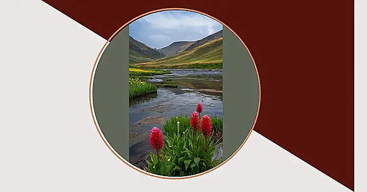 Imagine stumbling upon this place! You’re trekking through some epic mountains, and bam! Suddenly, there’s a river running through it, and it’s like, “Surprise! Check out these crazy red flowers that look like they belong on a Dr. Seuss book cover.” It’s not just grass and trees – these plants are rocking vibrant colors and shapes that totally steal the show. It’s like the landscape decided to throw a red carpet event, and the flowers are the VIPs.