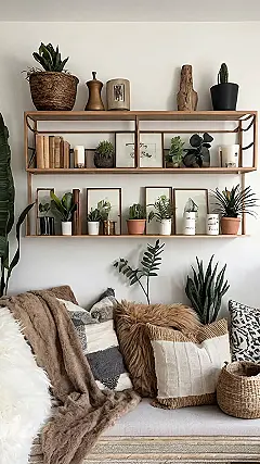 Now, filling these shelves is where the real fun begins. Raid your grandma’s attic for those quirky vases she doesn’t use, hit up the thrift store for some unique bowls, or even just grab a cool rock from your backyard. It’s all about showing off your personality, even if your personality is “loves plants and shiny things.” The best part? It’s all totally you and nobody else will have exactly the same setup!