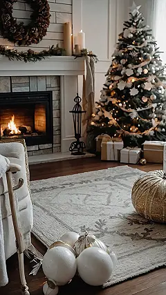 This picture is pure Christmas magic! Look at that gorgeous tree, all sparkly and ready for presents. It’s like stepping into a holiday card, complete with a roaring fireplace to keep you toasty warm while you sip hot cocoa. Those oversized ornaments look like they’re ready for a snowball fight (though maybe not the kind with snow!). I bet the scent of pine and cinnamon fills the air, making this the coziest room ever for Christmas.