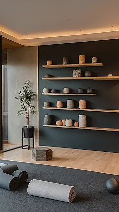Look at this place! It’s basically the opposite of your backpack after a long school day – no random crumbs or forgotten homework hiding in corners. This room is like a deep breath made visible, with its smooth floor ready for some serious stretching and walls that probably know how to keep secrets (unlike your friends). Those plants are just hanging out, looking super chill, and honestly, you could probably learn a thing or two from their relaxed vibe in a space this calm.