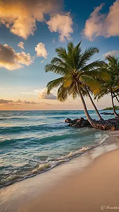 This picture is basically a postcard from a tropical paradise that’s screaming “Wish you were here…and had sunscreen!” Look at that crystal-clear water; it’s practically begging you to jump in and splash around. And the sand looks softer than that fluffy sweater you stole from your older sibling (we won’t tell!). Just imagine yourself lounging under those palm trees, sipping a fruity drink, and forgetting about all your homework. Sounds pretty good, right?