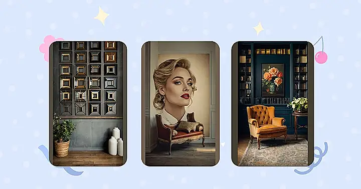 The best part? It’s a total statement piece! This image perfectly captures the essence of “Vintage Frame Gallery Wall” – a stylish blend of old and new. That gorgeous, vintage-style furniture adds a touch of elegance that any room would crave. Plus, who wouldn’t want a life-sized portrait of a glamorous gal decorating their wall? It’s totally unique, guaranteed to start conversations, and frankly, it’s just plain awesome.