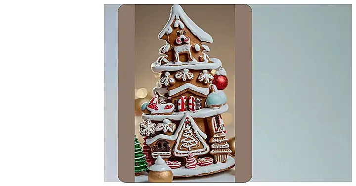 Look at this adorable gingerbread house! It’s like something out of a Christmas fairytale, complete with a tiny, slightly goofy gingerbread man who seems ready to join in on all the holiday fun. The house is perfectly decorated with candy canes, icing swirls, and even a cheerful red door—it’s almost too cute to eat! I bet it smells amazing, and I wouldn’t blame anyone for wanting to sneak a bite (or two!).