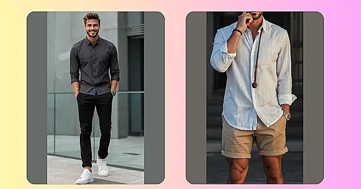 Thinking of upgrading your wardrobe but still wanna keep things easy-breezy? This guy’s got it down. Just throw on a light-colored button-up (a little wrinkly is totally cool, actually), some khaki shorts rolled up just so, and bam! You’re ready for anything from grabbing a smoothie to… posing dramatically for a photo, obviously. Don’t forget the crucial accessories like a cool bracelet and a watch, because punctuality is also fashionable.