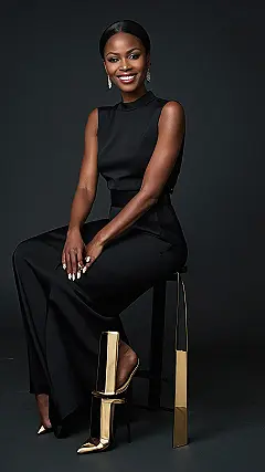Seriously, though, how amazing is that shoe design?! It’s so unique and modern, it almost steals the show from the already amazing black jumpsuit. This whole look shows that sometimes less is more – a perfect black outfit can be elevated to another level with the right accessories. Plus, the lady in the photo looks absolutely radiant, proving that the best accessory is always a confident smile. If you’re looking for some “black lady outfits” inspiration, this photo should be your new go-to.