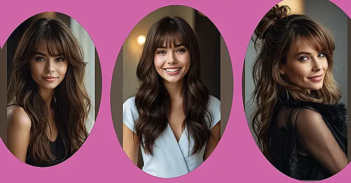 Seriously though, this haircut is giving major “I woke up like this” vibes, but with a hint of sophistication. Those long layers and curtain bangs frame the face perfectly, making anyone look like they just stepped off the cover of a magazine (or maybe just out of a really dreamy Instagram filter). The best part? This style is super versatile—you can dress it up or down, and it’ll always look totally awesome. It’s like the chameleon of hairstyles; it changes depending on how you style it but it’s always amazing!