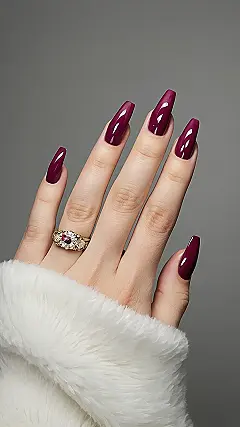 These nails are seriously regal! That deep, rich purple is like a fancy grape soda for your fingertips. It’s the perfect shade to pair with a fluffy white sweater on a chilly evening, making you feel like you’re ready for a hot chocolate and a good book. It’s almost as glamorous as having a tiny, sparkling gemstone on your finger—almost!