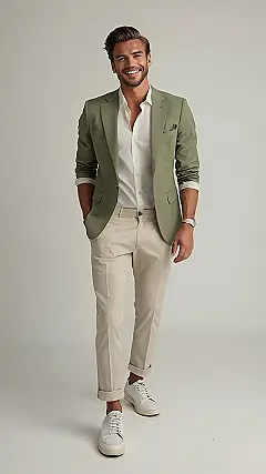 The key to pulling this off is confidence, and maybe a good tailor. You don’t want your blazer drowning you, or your pants looking like they came from your grandpa’s closet (unless that’s the vibe you’re going for, in which case, rock it!). This look works great for a chill hang with friends or even a first date if you’re trying to give off “I’m chill, but I also have my life together” vibes. Just remember to ditch the pocket square if you’re planning on getting messy with that ice cream!
