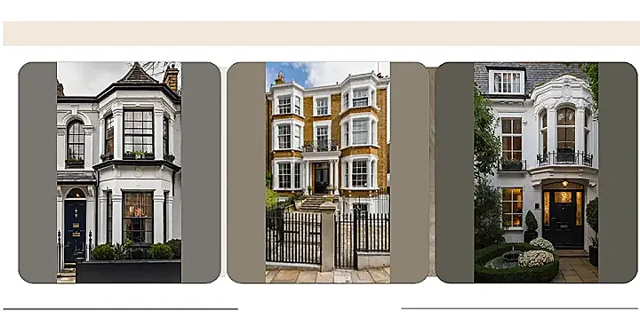 Seriously, these homes are goals! They are classic London style, showing off the kind of architecture that makes people go “wow!” from across the street. Just picture yourself chilling in one of those perfectly placed window seats, sipping tea (or maybe lemonade, because it’s probably a bit too hot to handle tea in London’s summer). You’d be living the ultimate London dream – even if your only real adventure is trying to decide what color curtains would perfectly match your perfectly-placed ivy.