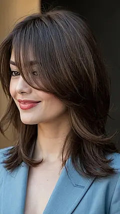 Seriously, this haircut is amazing! It’s not just about the layers; it’s about the shape, the way the light catches the different strands, and how it frames her face beautifully. It’s the kind of hairstyle that could get you invited to hang out with all the cool kids, even if you accidentally wear mismatched socks. So, if you’re looking for a fresh look that’s both trendy and easy to manage (think minimal styling required!), this might just be your next hair goal.