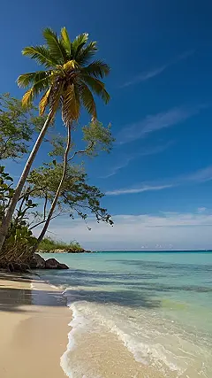 Imagine this: you’re totally stressed about that upcoming history test, but then *bam* – you’re suddenly transported to a beach so ridiculously beautiful, it makes your worries melt away faster than an ice cream cone on a hot day. That’s exactly what this picture screams! A majestic palm tree, leaning like it’s whispering secrets to the ocean, a soft, sandy beach begging for your bare feet, and water so clear, you’d swear you could see tiny fish doing the limbo. It’s the ultimate mind-relaxing nature location, even if it’s just in a picture!