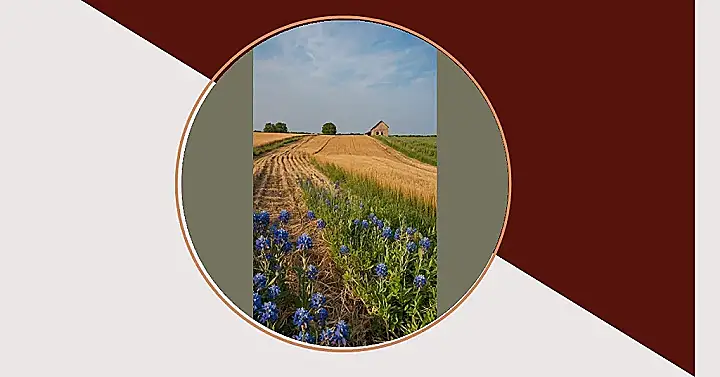 Taking photos in places like this is way more fun than trying to get a decent selfie in a crowded mall. You might get tangled in some tall grass (part of the adventure!), or have to dodge a friendly bee checking out the blue flowers in the foreground (they’re basically posing for the camera, right?). It’s all about capturing the quiet cool of the countryside, from the big sky to the tiny details. So next time you see a scene like this, grab a camera – even your phone works – and give rural photography a shot. Just try not to step on the art (the flowers!).
