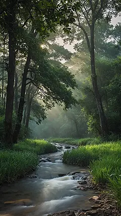 Look at this scene! All peaceful streams and sunlight filtering through the trees, looking all magical like something out of a fantasy movie. What you don’t see is the photographer who probably set their alarm for like, 4 AM, stumbled through the dark woods half-asleep, hoping a squirrel doesn’t decide their leg is a tree. It’s all for that one perfect moment when the mist meets the light just right. You think these gorgeous rays of light just *happen* for Instagram? Nope, someone earned those sunbeams, probably by sacrificing a few hours of sleep and battling some serious morning dew.