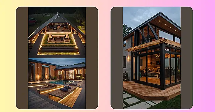 Imagine a barndominium so cool, it’s got a built-in party patio! This isn’t your grandpa’s barn; it’s a stylish, cozy space where the party never has to end. Think sleek lines, super-comfy seating, and enough room for your friends AND your pool table (if you’re lucky!). It’s the perfect blend of “cozy and compact,” like a really awesome treehouse for grown-ups—with a pool!