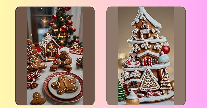Wow, check out this gingerbread village! It’s like a tiny, delicious town made entirely of gingerbread cookies. There’s a super cute gingerbread house with candy cane chimneys, and it’s surrounded by a whole bunch of gingerbread people—maybe they’re the villagers! It’s seriously adorable, and I bet it smells amazing. I wouldn’t even mind if someone accidentally bumped into it and caused a little gingerbread landslide.