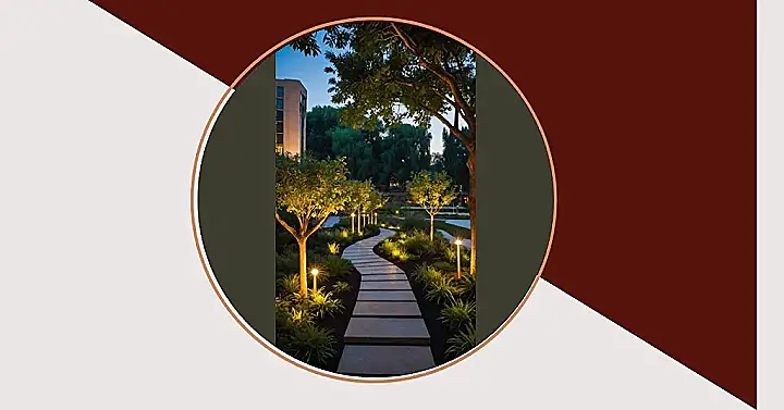 Finding a cool spot in the middle of a city can feel like a quest, right? Well, check out this picture – it’s like the pathway itself is rolling out the red carpet, but for nature. Those fancy lights aren’t just there to stop you from tripping over a rogue squirrel; they’re basically saying, “Welcome to the chill zone!” It’s all part of making boring city bits way more interesting, like turning a concrete maze into a secret garden path you actually want to follow.