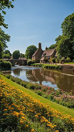 Walking into a place like this English village with a camera is basically like winning the jackpot for your photo album. Look at it! Those houses look like they’ve been plucked straight out of a really old, really charming storybook, complete with chimneys that probably have birds nesting in them. And the flowers? They’re practically trying to stage a colourful rebellion, spilling over walls and next to the little stream. You could point your camera almost anywhere and get a shot that makes everyone back home instantly jealous. It’s the kind of scene where even accidentally blurry photos somehow look artsy and perfect.