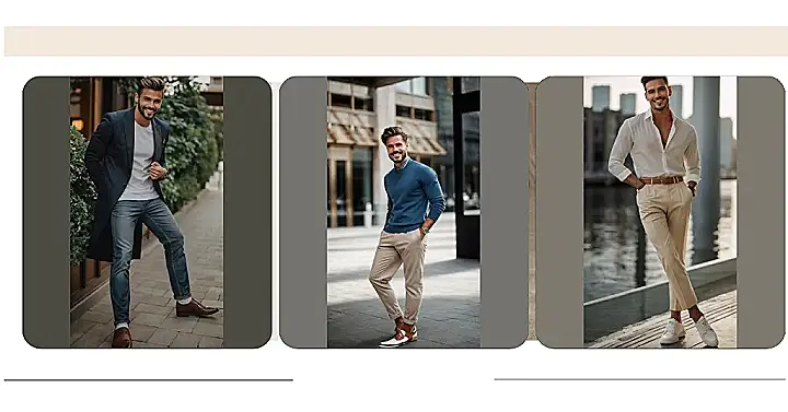This guy’s got style for days! He’s rocking the classic white shirt and tan pants combo, but with a twist that makes it totally modern. No tie? No problem! He’s got that “I woke up like this” look down pat, and those white sneakers just add to the relaxed vibe. This style is perfect for a day out with friends, or maybe even a first date (just make sure you’re not wearing the same thing).