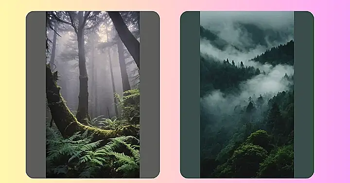 This image is like stepping into a fairytale! The trees are tall and mysterious, like they’re guarding secrets. The fog swirling around them makes it feel super spooky, but in a good way. It’s like something straight out of a fantasy movie. All that green moss is super cool too, it makes the whole forest feel extra magical and dreamy. It looks like the perfect place to have an adventure!