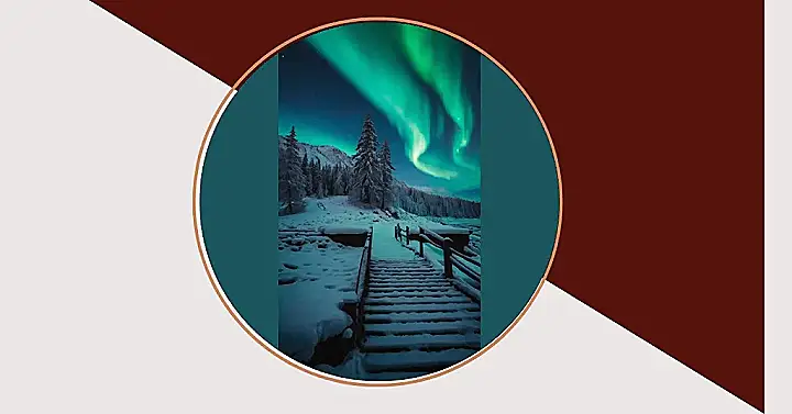 Imagine stepping onto a snowy staircase, the crisp air biting at your cheeks, as the Northern Lights dance overhead like a magical show. This picture is a total winter vibe! You could almost feel the cold, hear the crunch of snow under your boots, and see the light from the aurora borealis reflecting off the fresh powder. It’s like a scene out of a fairytale, except this is real life!