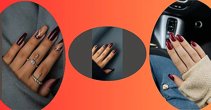 This image is giving serious winter nail inspo! Just look at those gorgeous burgundy nails, the perfect color to keep your hands looking chic even when you’re bundled up in your warmest sweaters. And those sparkly accents? They add a little bit of extra magic that’ll have everyone asking, “Where did you get those nails done?” They’re like the perfect winter accessory – warm, stylish, and just a little bit fancy.