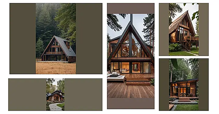 This funky A-frame wood house looks like it decided to play hide-and-seek with the forest and is currently winning, mostly. With its giant windows, it’s practically giving the trees a front-row seat to whatever weird dances you’re doing inside. I bet the house is secretly jealous of its neighbors, wishing it could sprout leaves and sway in the breeze instead of just standing there looking all modern and fabulous. It’s probably whispering to the trees, “Psst, teach me your secrets to not needing a plumber!”